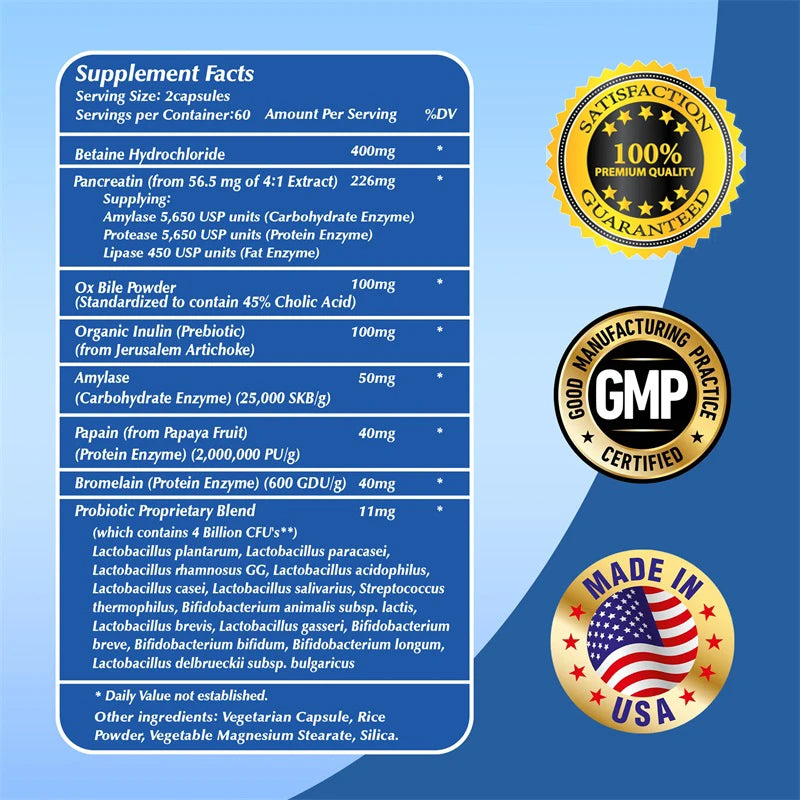 Ingredients: Betaine Hydrochloride, Ox Bile Powder